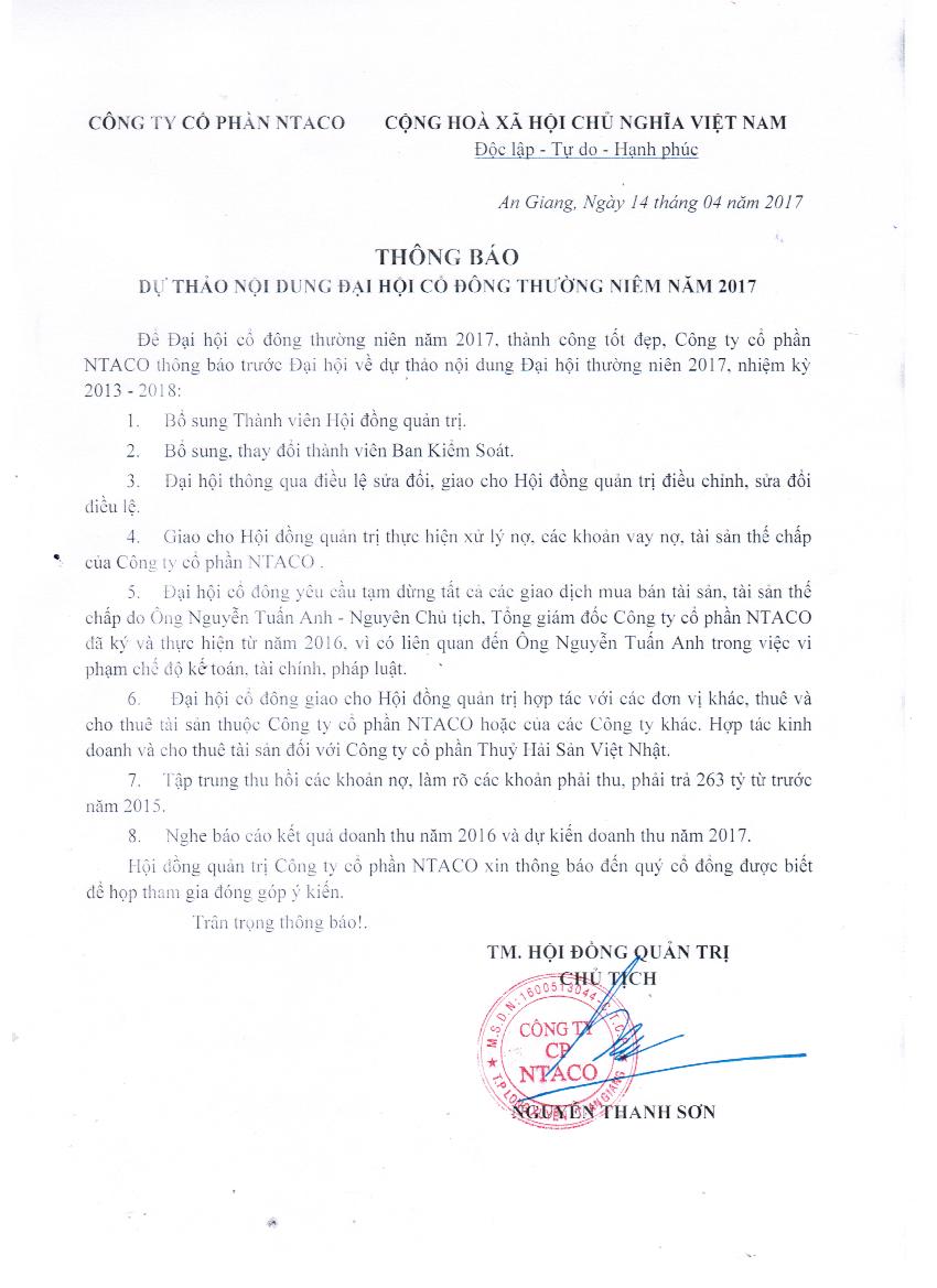 DỰ THẢO NỘI DUNG CUỘC HỌP ĐẠI HỘI CỔ ĐÔNG THƯỜNG NIÊN NĂM 2017